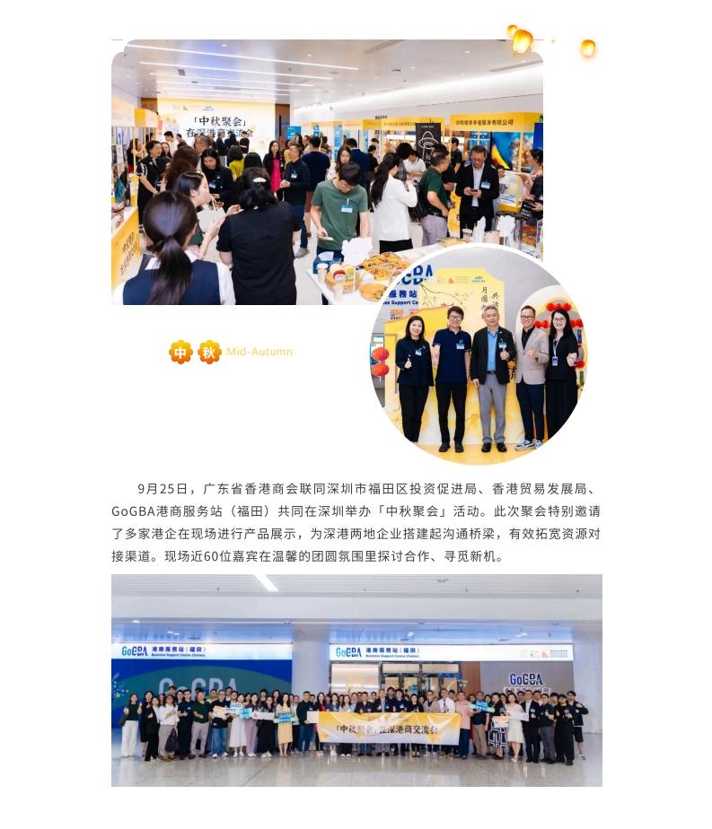 9月25日,广东省香港商会联同深圳市福田区投资促进局、香港贸易发展局、GoGBA港商服务站(福田)共同在深圳举办「中秋聚会」活动...