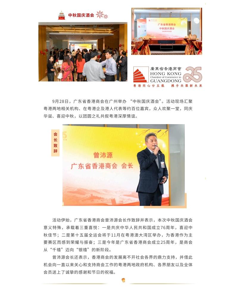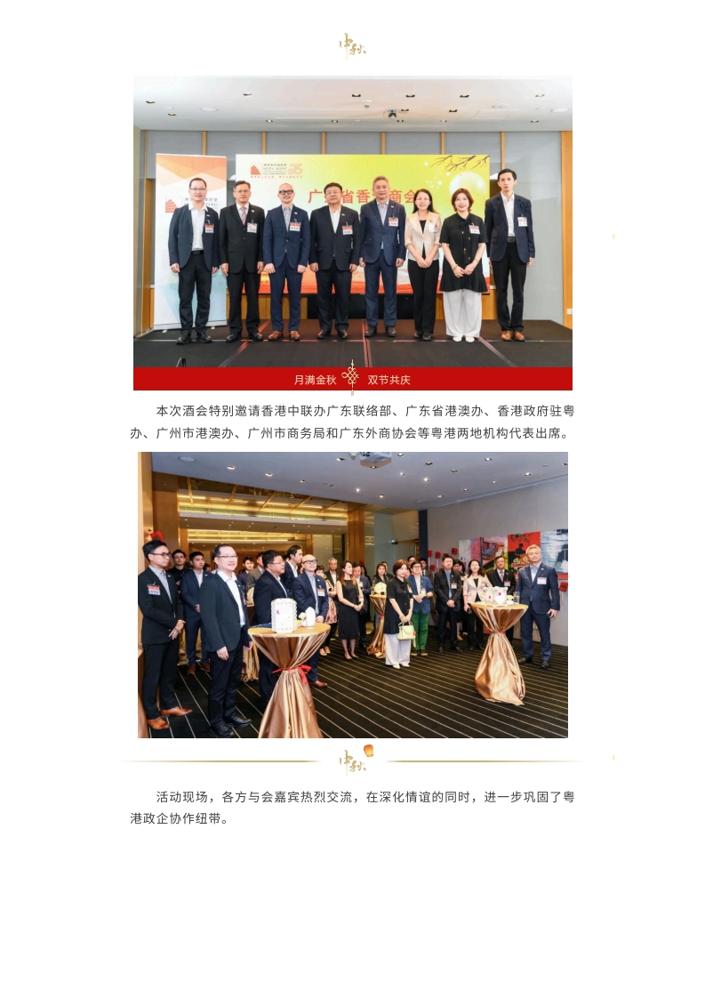 9月28日,广东省香港商会在广州举办 “中秋国庆酒会”。活动现场汇聚粤港两地相关机构、在粤港企及港人代表等约百位嘉宾...