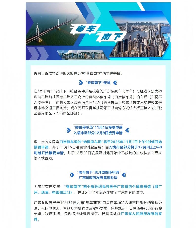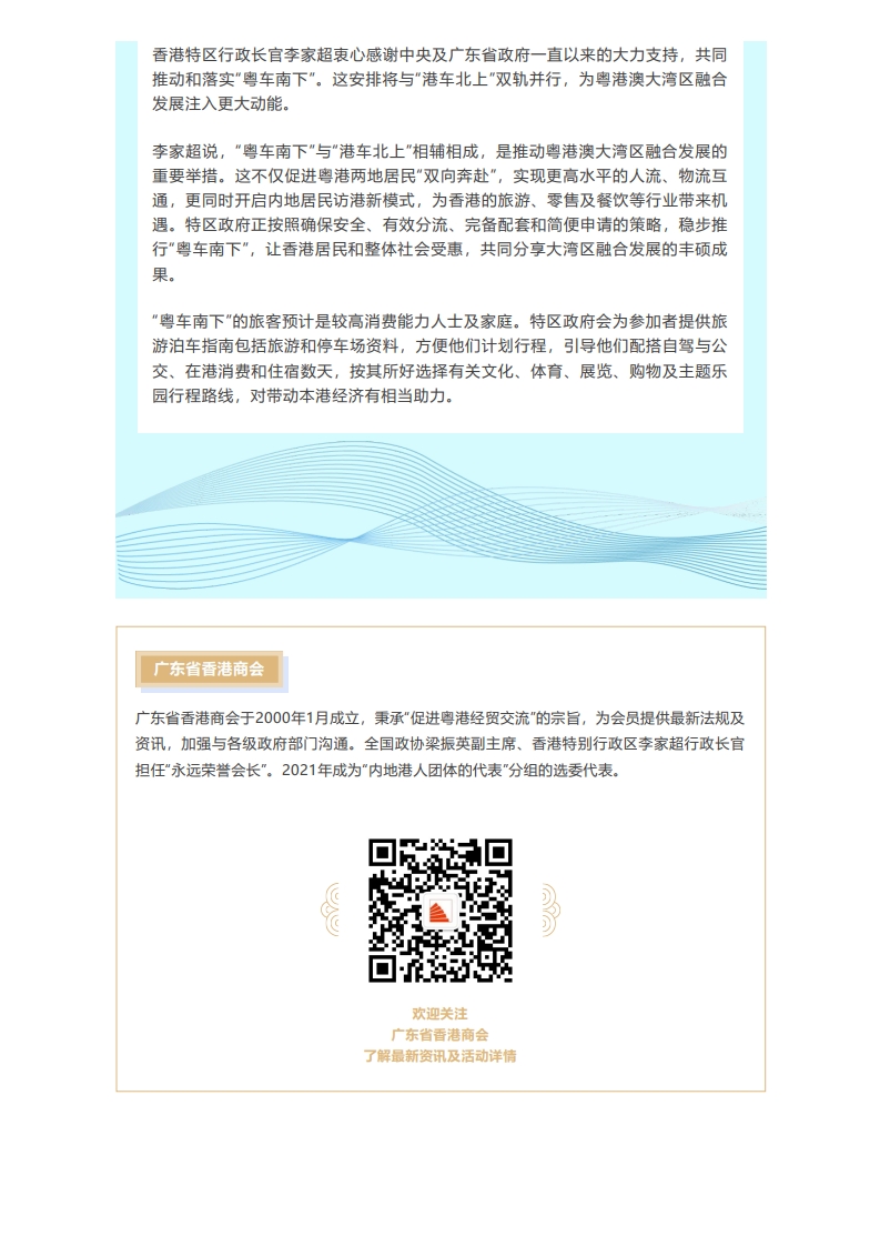 香港特区行政长官李家超衷心感谢中央及广东省政府一直以来的大力支持,共同推动和落实“粤车南下”...