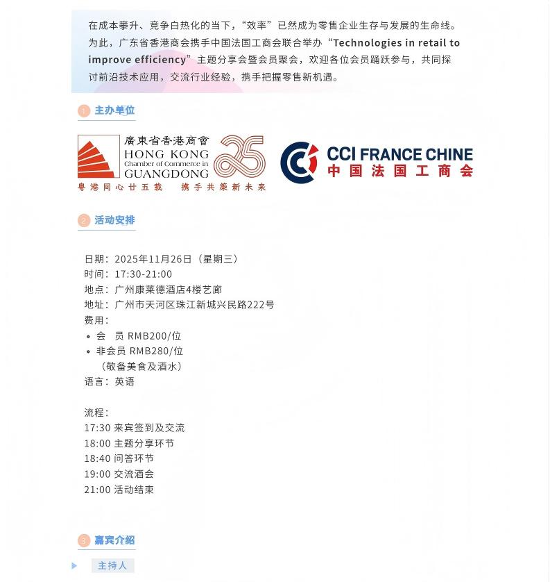 广东省香港商会携手中国法国工商会联合举办“Technologies in retail to improve efficiency”主题分享会暨会员聚会...