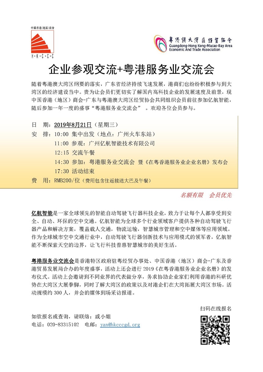 贵为让会员们更切实了解国内高科技企业的发展速递及前景,现组织会员参加亿航智能等活动...